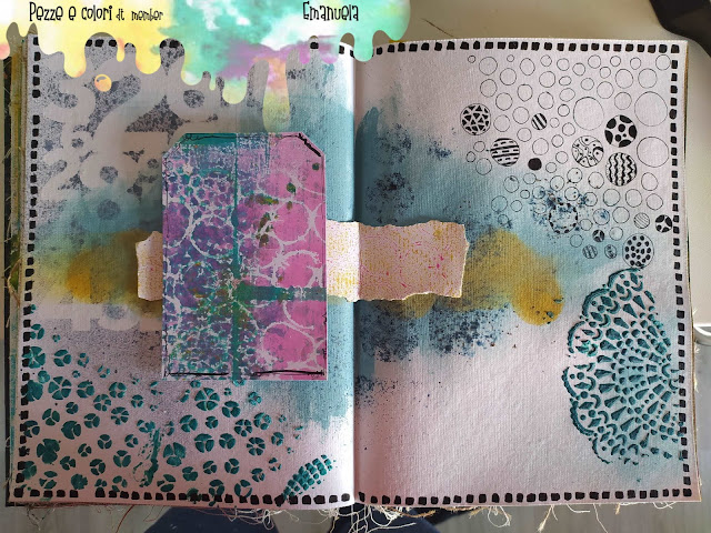Ho steso la Modeling Paste, poi ho colorato la stencilata.